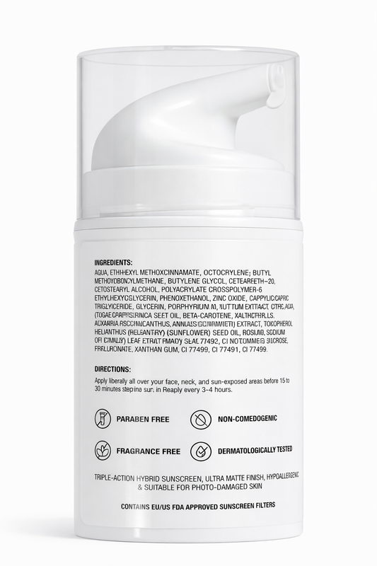 A lightweight, non-greasy formula that provides high-level protection against harmful UVA & UVB rays while keeping your skin smooth, hydrated, and youthful.☀️ Key Benefits