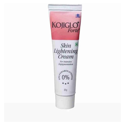 Regular price Rs. 699.00Regular priceUnit price / perMRP. 700.00Sale price Rs. 699.00Kojiglo Forte® Cream from ALKEM is an intensive depigmenting treatment formulated to effectively reduce stubborn hyperpigmentation, melasma, dark spots, and uneven skin tone. This dermatologically advanced formula combines Kojic Acid Dipalmitate, Hydroquinone, and Niacinamide along with natural depigmenting agents like Pine Bark Extract, Tetrahydrocurcumin, and Tetrahydropiperine to achieve fast and targeted skin lightening. Enriched with Ascorbic Acid (Vitamin C) and Allantoin, the cream also supports skin renewal, calms irritation, and helps restore skin radiance.