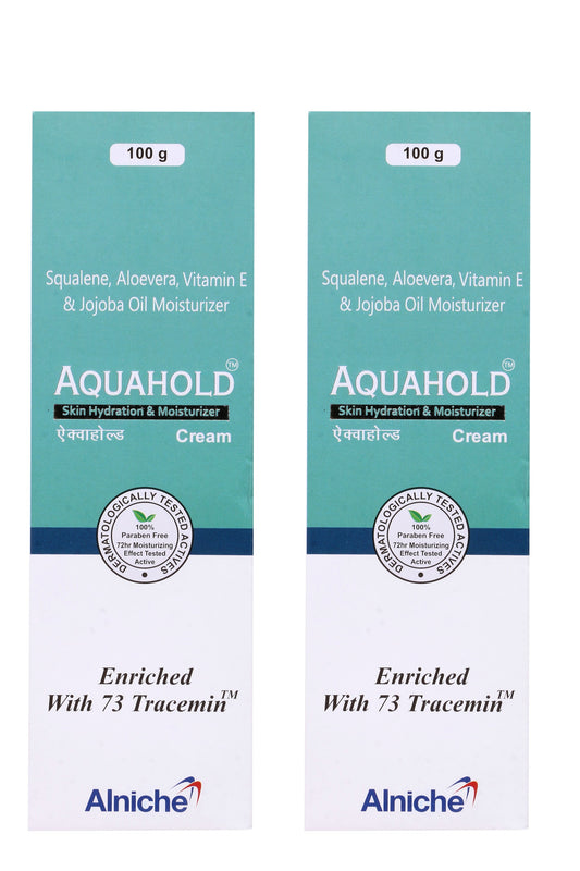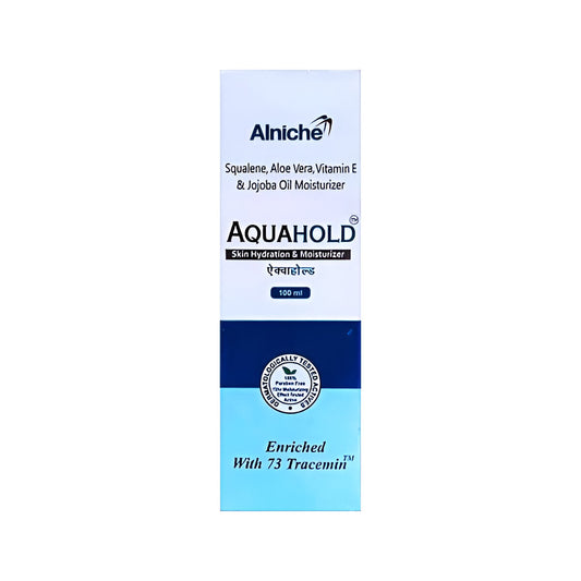Regular price From Rs. 316.00Regular priceUnit price / perMRP. 317.00Sale price From Rs. 316.00Experience deep, long-lasting hydration with Aquahold Cream by Alniche a dermatologist-tested moisturizer enriched with nature’s finest emollients and minerals. Designed specifically for dry, rough, and sensitive skin, it features a nourishing blend of Squalene, Aloe Vera, Vitamin E, and Jojoba Oil. These ingredients work together to soothe, moisturize, and restore the skin barrier. Powered by Pentavitin® and 73 trace minerals, Aquahold hydrates for up to 72 hours, leaving your skin soft, healthy, and rejuvenated. Ideal for daily use, this non-greasy, paraben-free formula offers a smooth, luxurious application and visibly radiant skin.