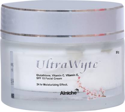For external use only.Feature Details Product Name Ultra Wyte Facial Cream Brand Alniche Pack Size 50g Skin Type All Skin Types Main Ingredients L-Glutathione, Vitamin C, Vitamin E, Alpha Arbutin Purpose Brightening, Hydration, Antioxidant Protection, Sun Defense SPF SPF 15 Effect Duration 24-Hour Moisturization Sold out -