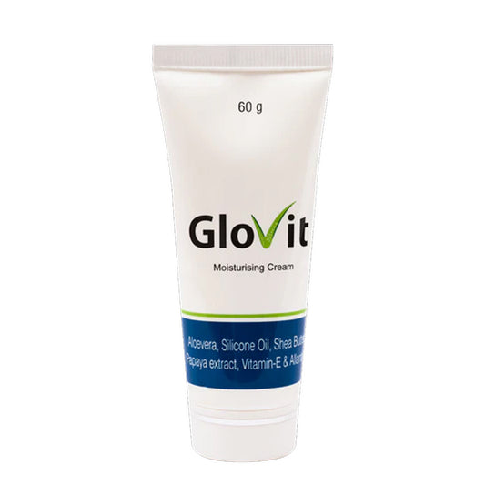 Feature Details Product Name Glovit Moisturizing Cream Brand Glasier Pack Size 60g Skin Type All Skin Types Main Ingredients Aloe Vera, Shea Butter, Papaya Extract, Vitamin E, Silicone Oil Purpose Deep Moisturization, Skin Repair, Hydration Sold out -